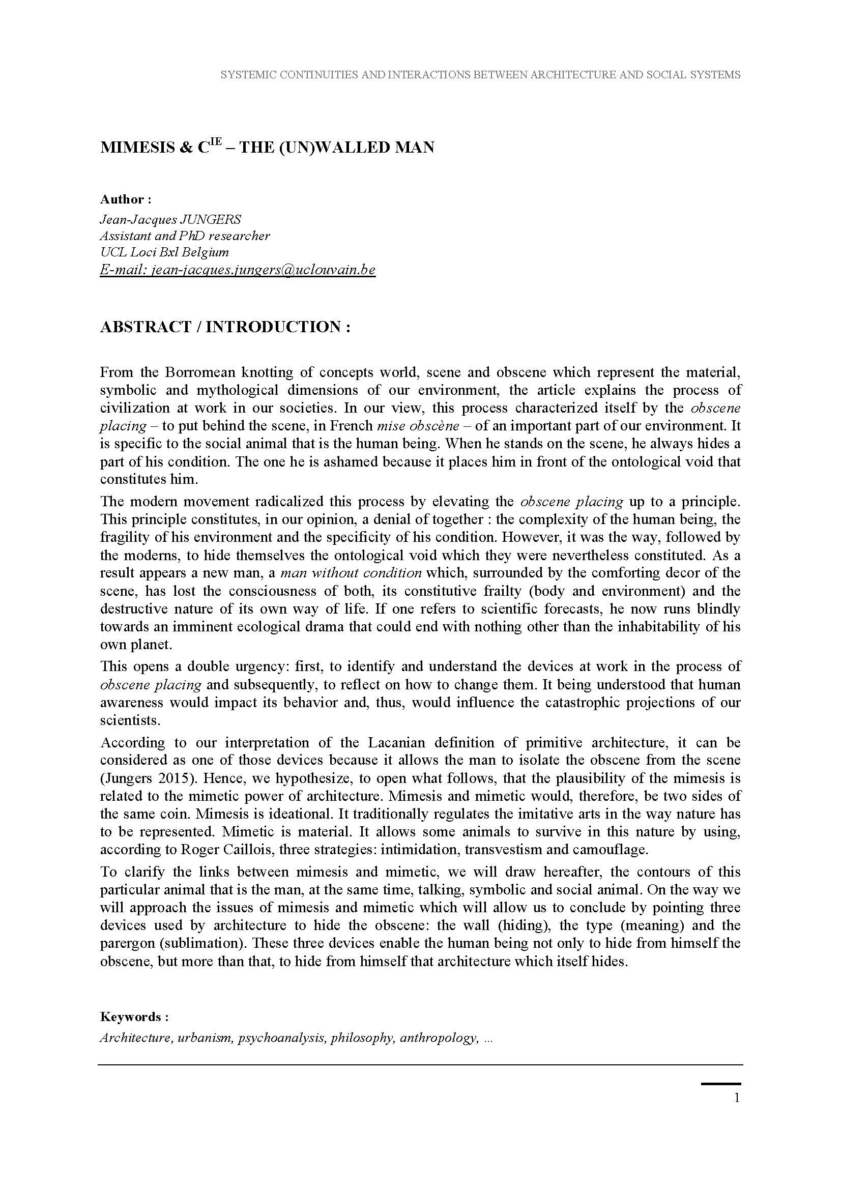 MIMESIS & CIE — THE (UN)WALLED MAN